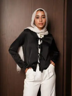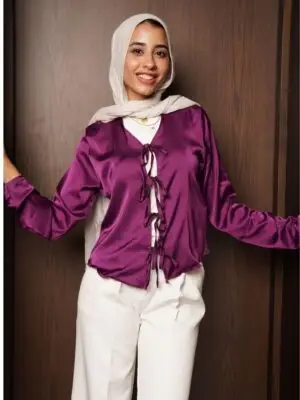 Description: satin blouse with bows Bec. Iam just a girl