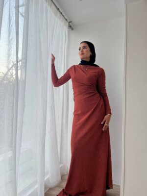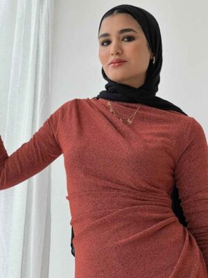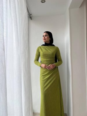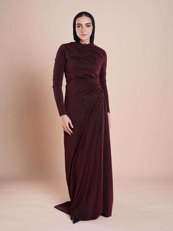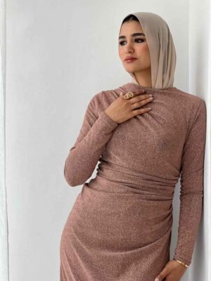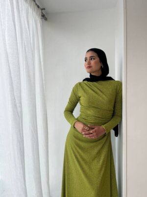 Rushed side long sleeves dress