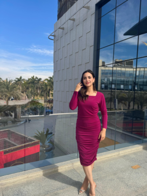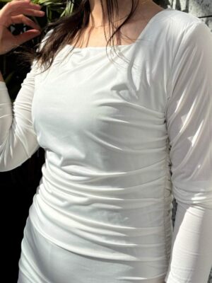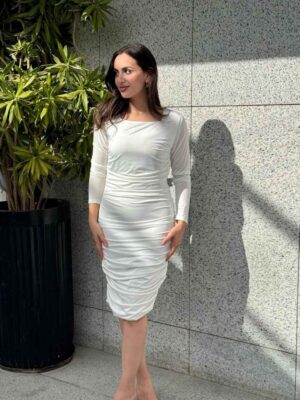 Rushed maxi dress with fitted bodycon design with long dleeves
