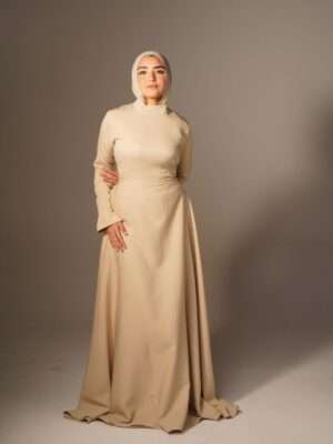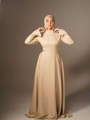 Descriptions: Flawy dress with slitted sleeves and a corset