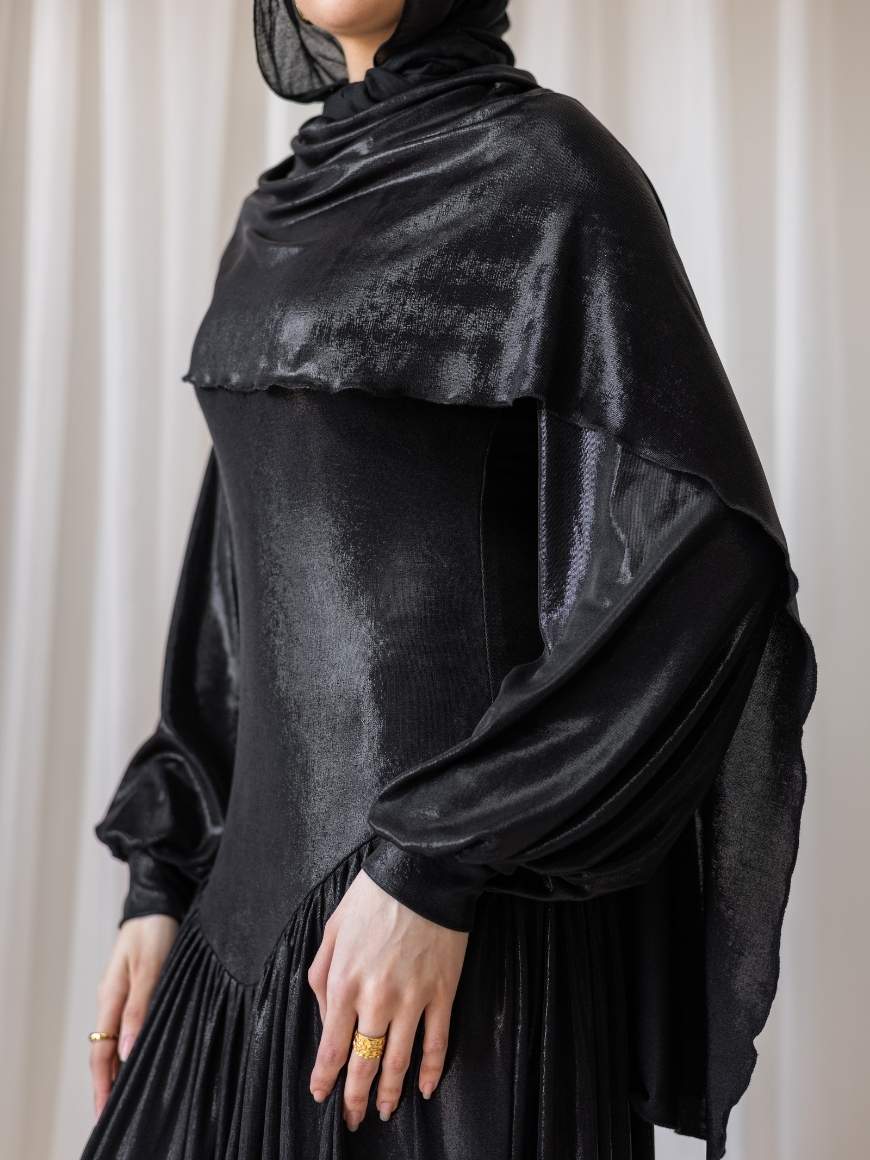 Metallic Flawy shimmery dress Draped gown with puffy arms