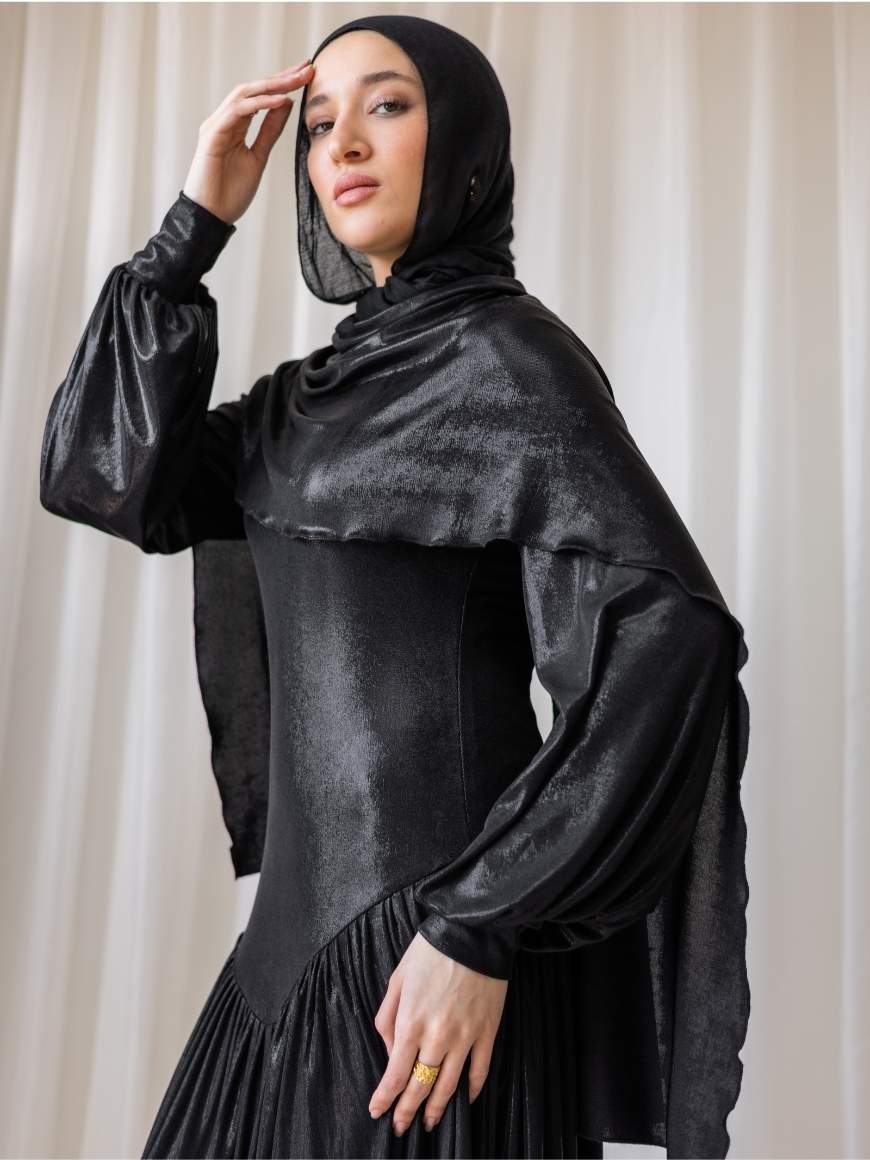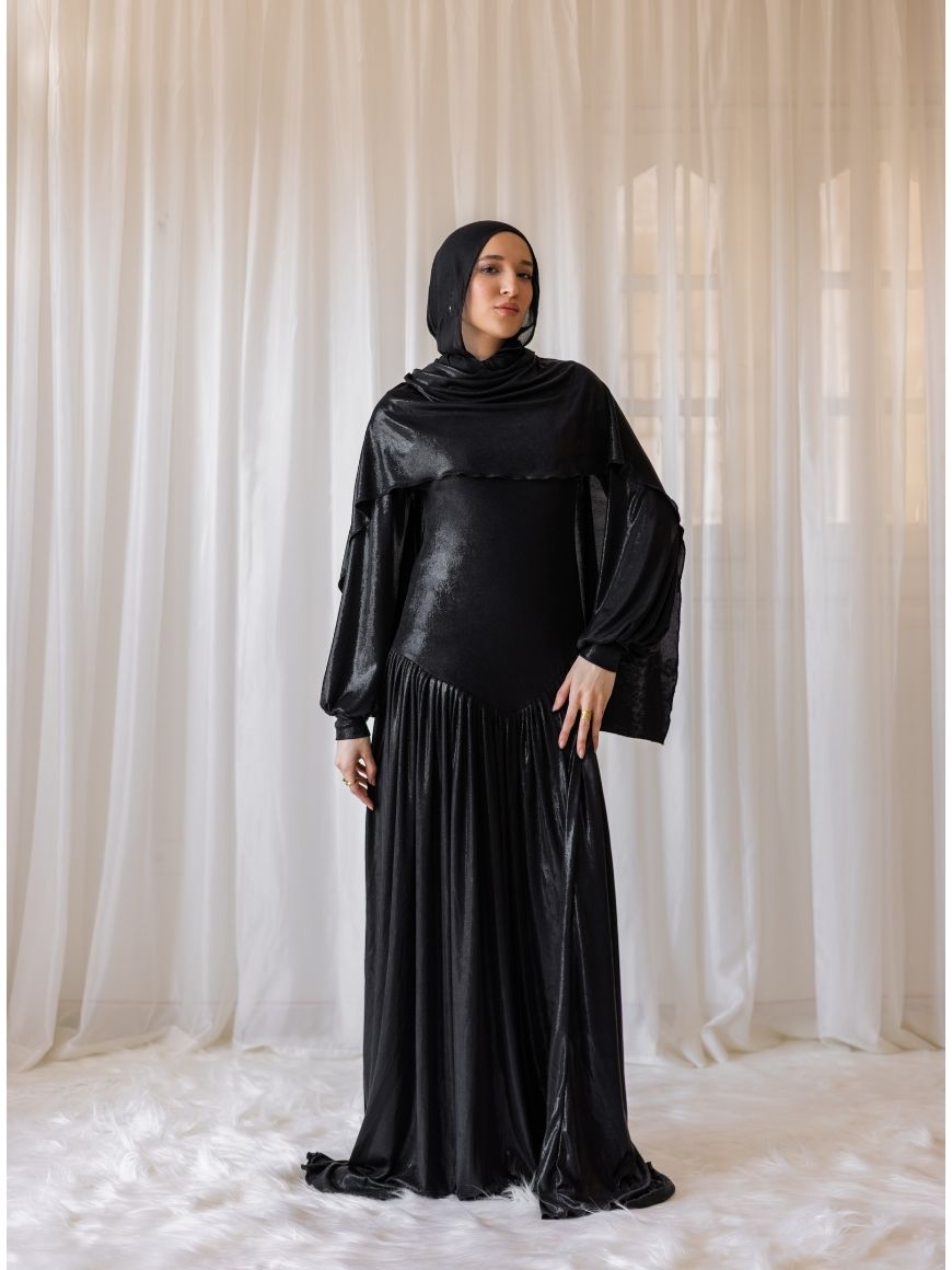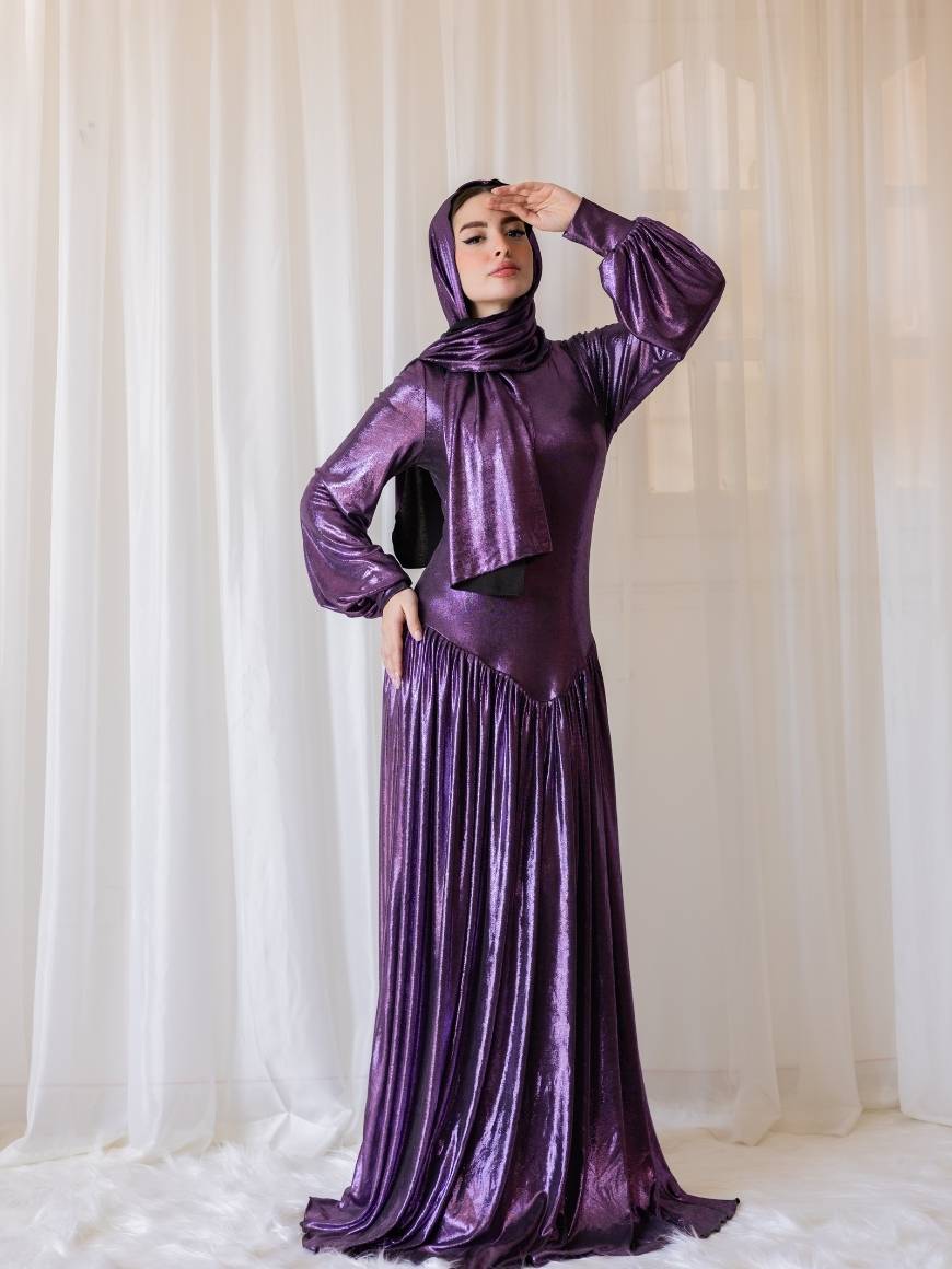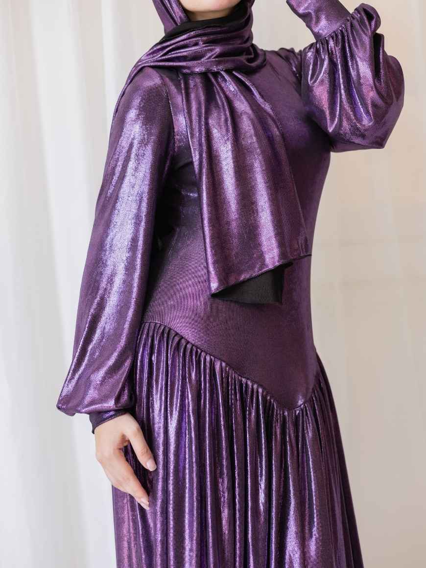 Metallic Flawy shimmery dress Draped gown and puffy arms