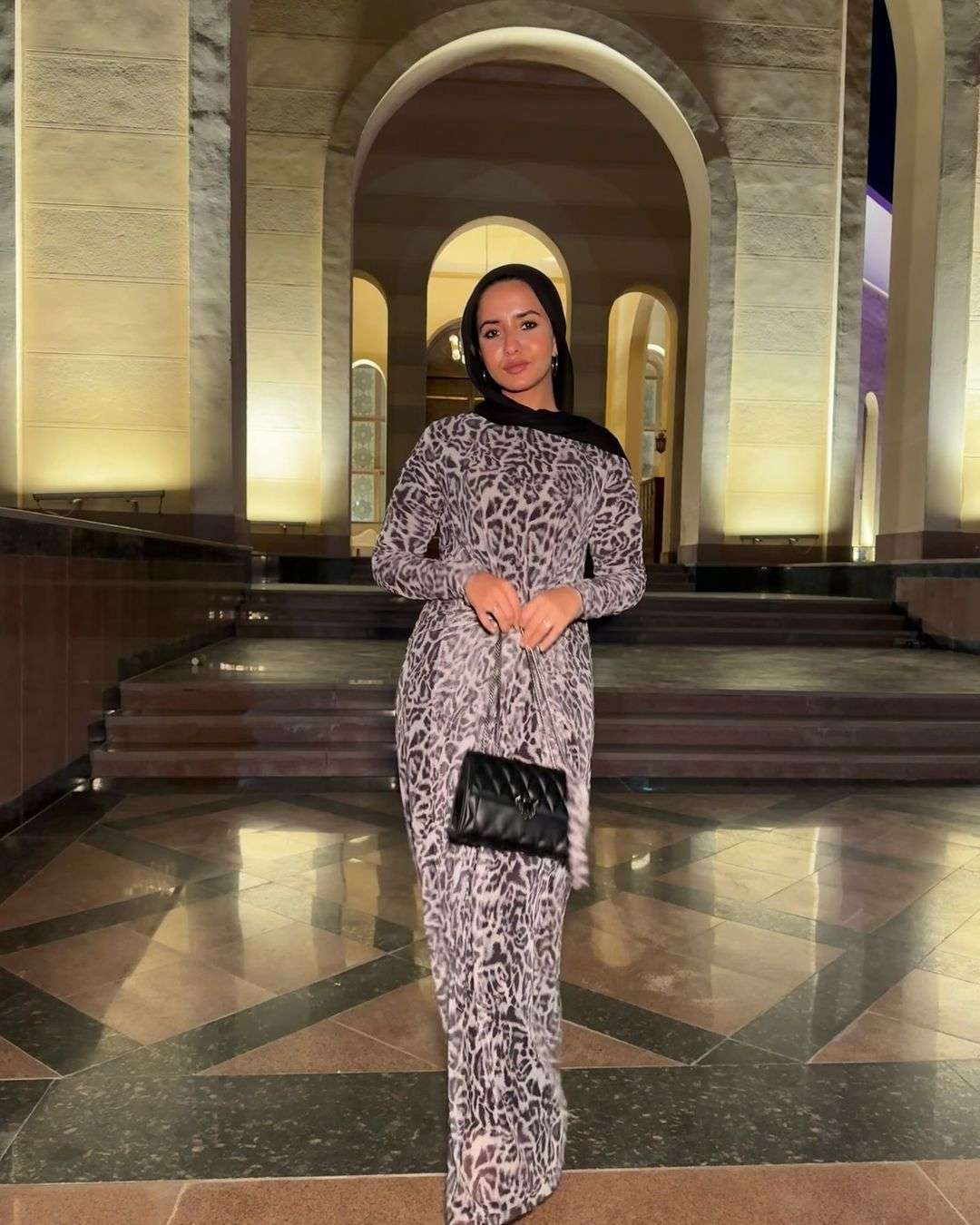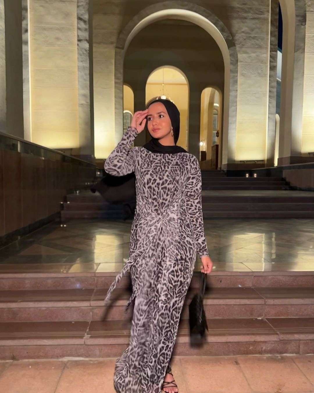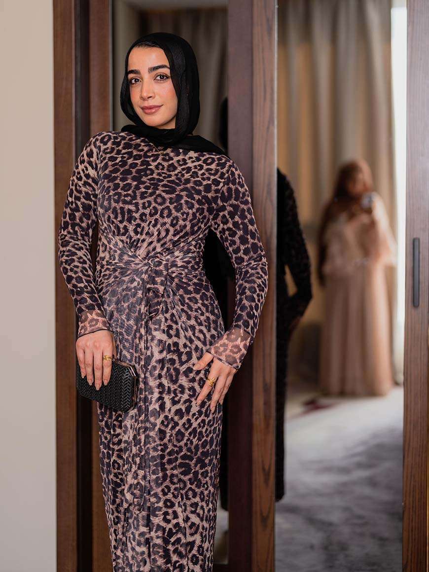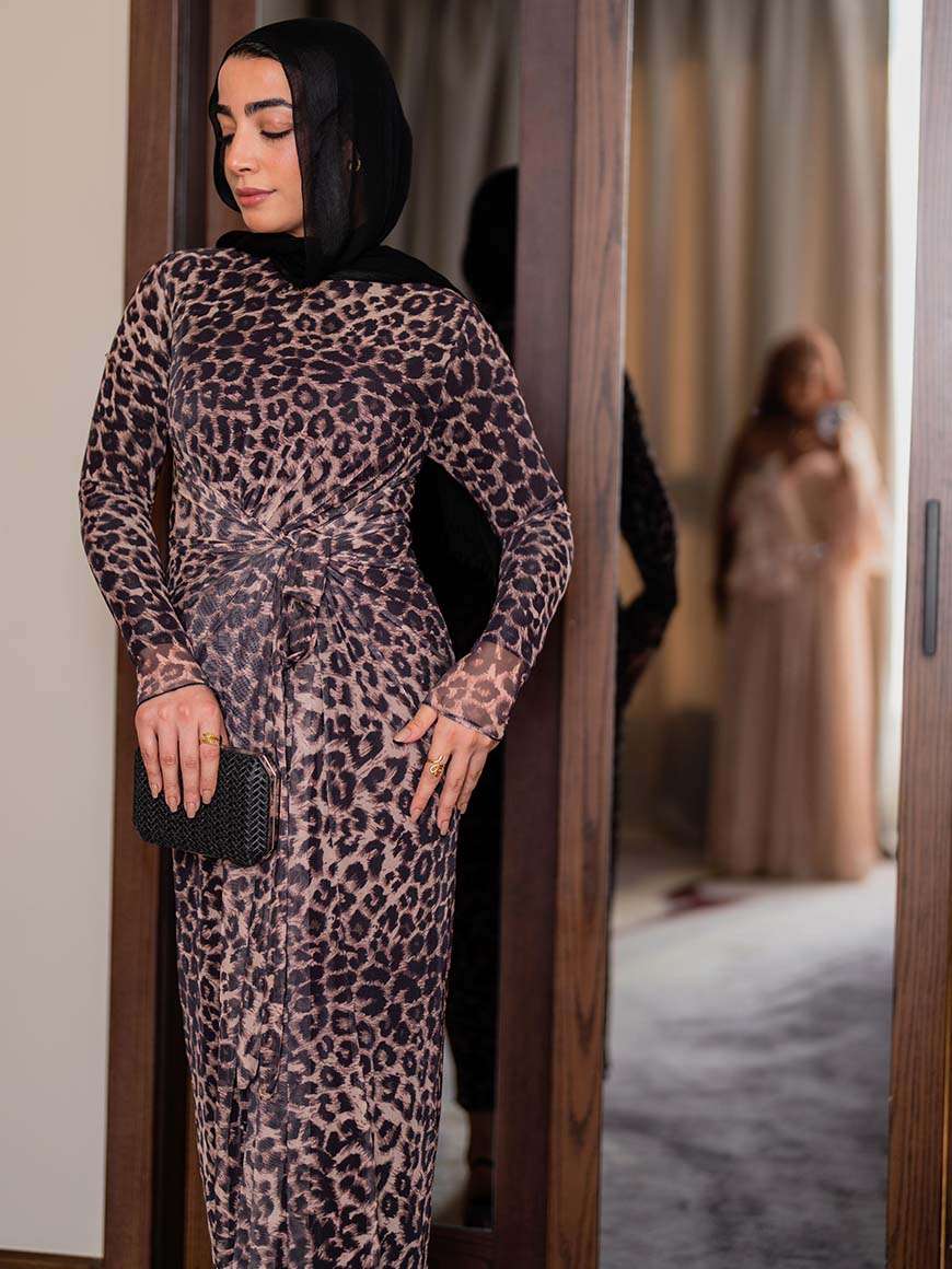 Cheetah printed long see through sleeves bodycon dress with wrapped waist
