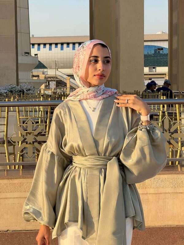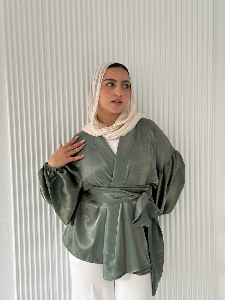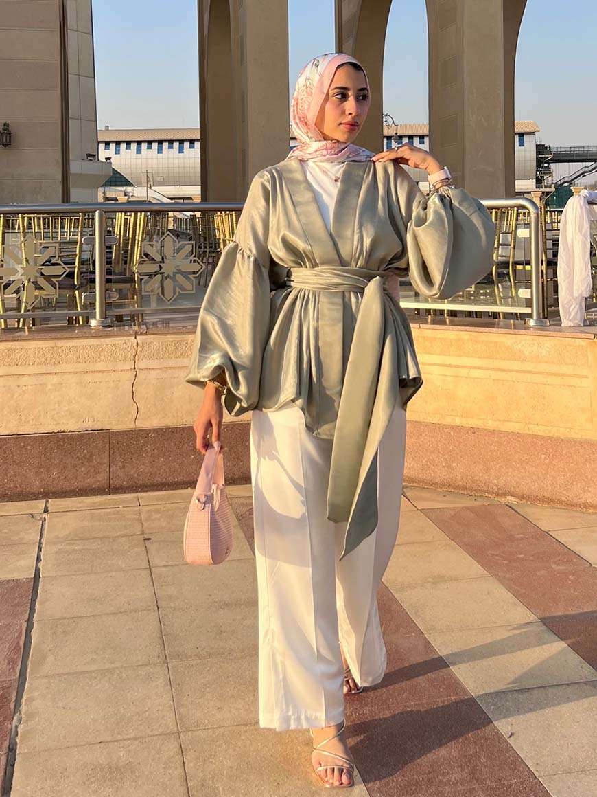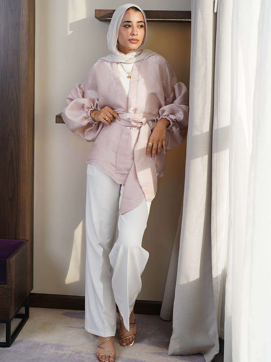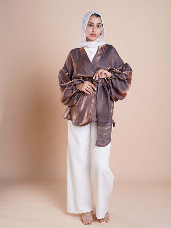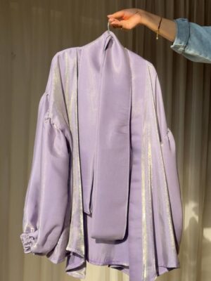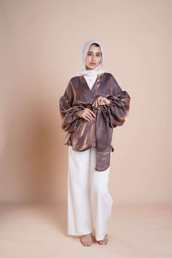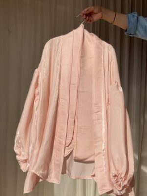 Flowered shape blouse with belt and puffy sleeves